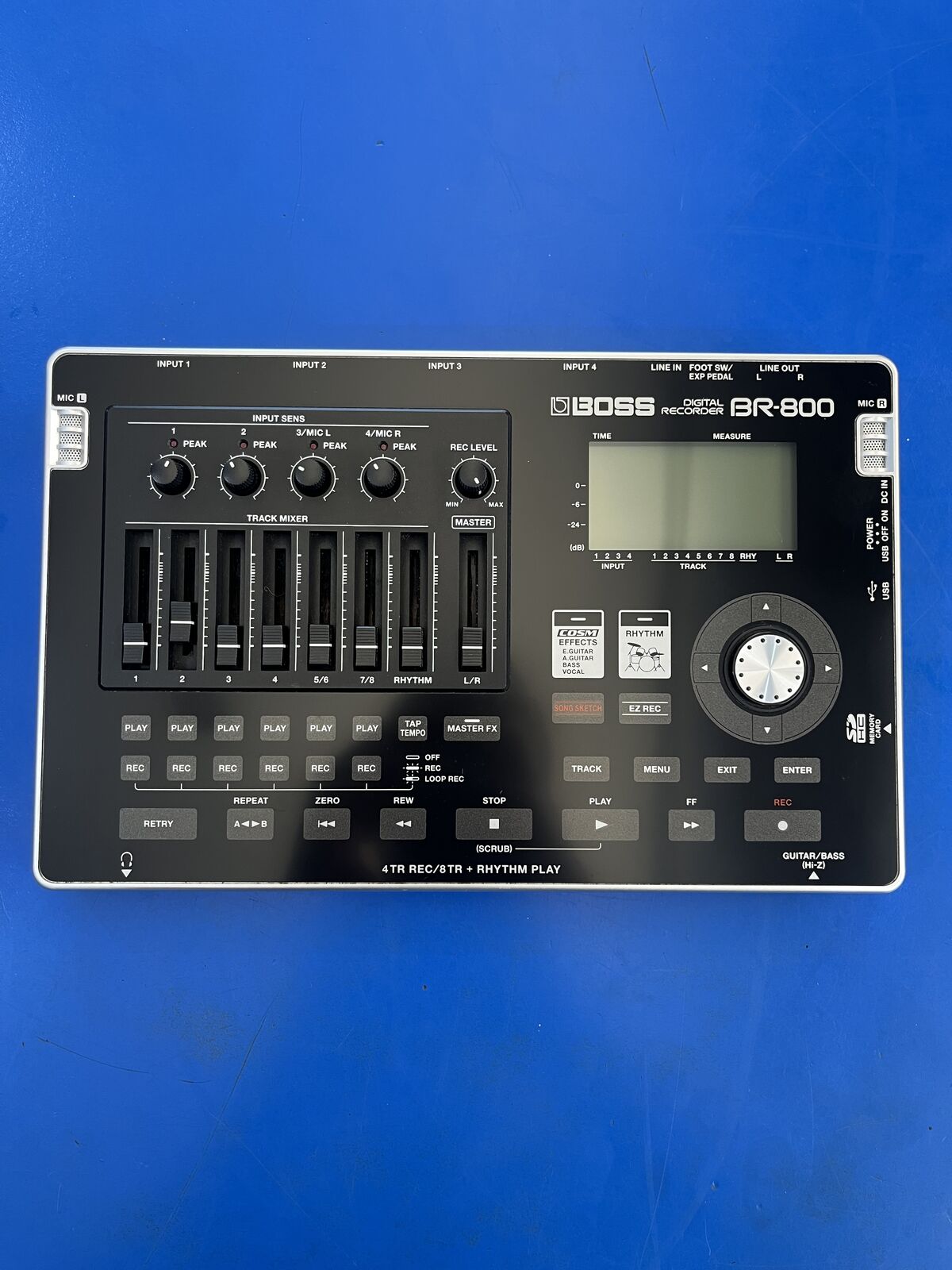 BOSS continues its top-selling tradition of portable, affordable multi-trackers with the new BR-800 — a battery-powered studio to go. The sleek new design is made possible by touch-sensor switches and SD-card recording media. Up to four tracks can be recorded simultaneously with eight tracks of simultaneous playback plus an additional stereo track dedicated to the built-in rhythm generator. The BR-800’s powerful onboard effects processor includes GT-10/10B effects, VE-20 vocal effects and harmonies, and COSM-based acoustic-guitar body modeling. EZ Recording feature interactively guides through the recording process. A stereo microphone is also built into the BR-800 for instant “Song Sketch” recording. No matter where you roam, you’ll never miss a moment of musical inspiration with the BR-800.