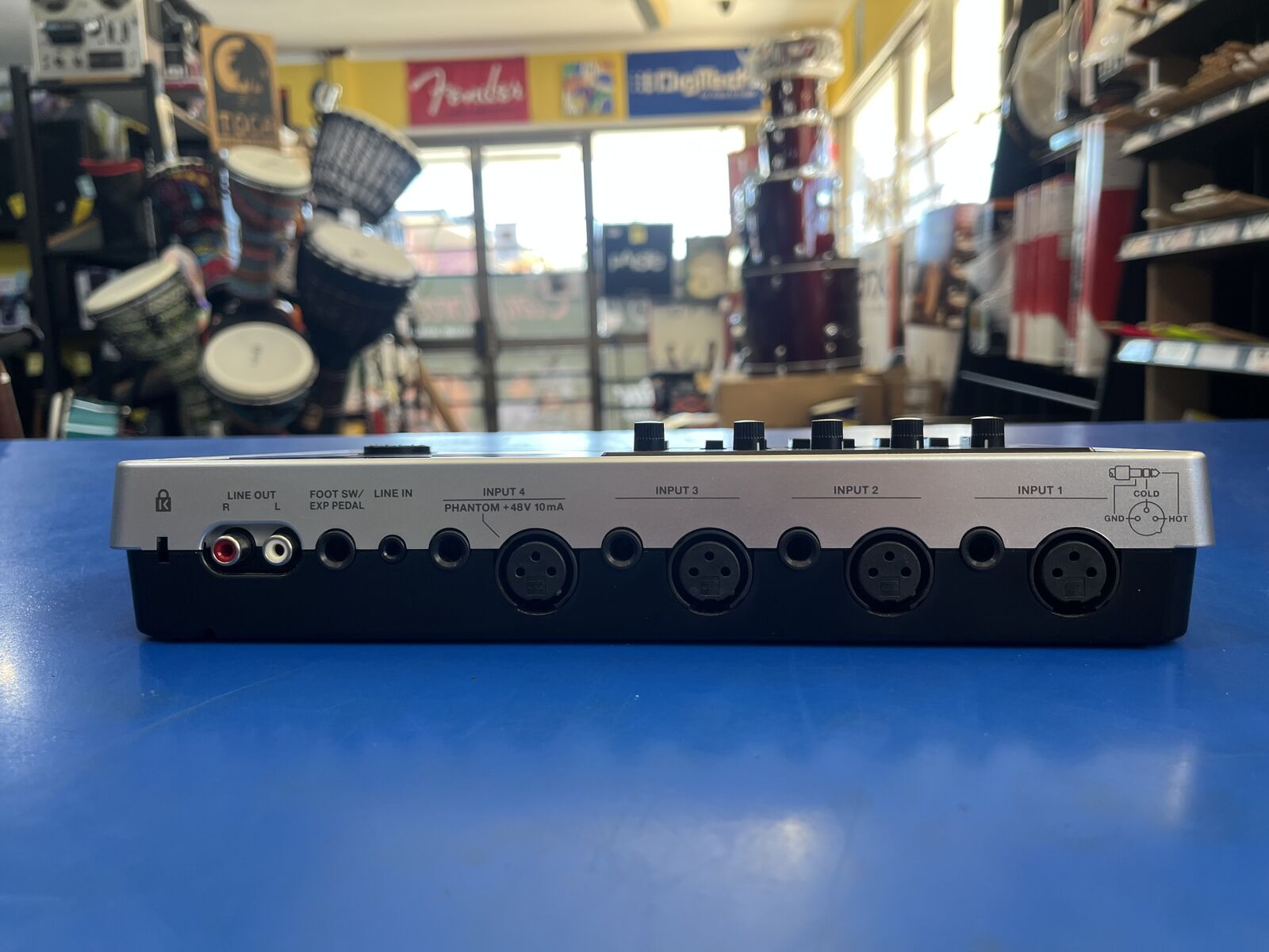 - GUITAR/BASS jack (1/4" phone type), INPUT 1 to 4 jacks (XLR type / 1/4" TRS phone type), LINE IN jack (Stereo miniature phone type), FOOT SW/EXP PEDAL (1/4" TRS phone type), LINE OUT jacks (RCA phono type), PHONES jack (Stereo 1/4" phone type), USB connector, DC IN jack